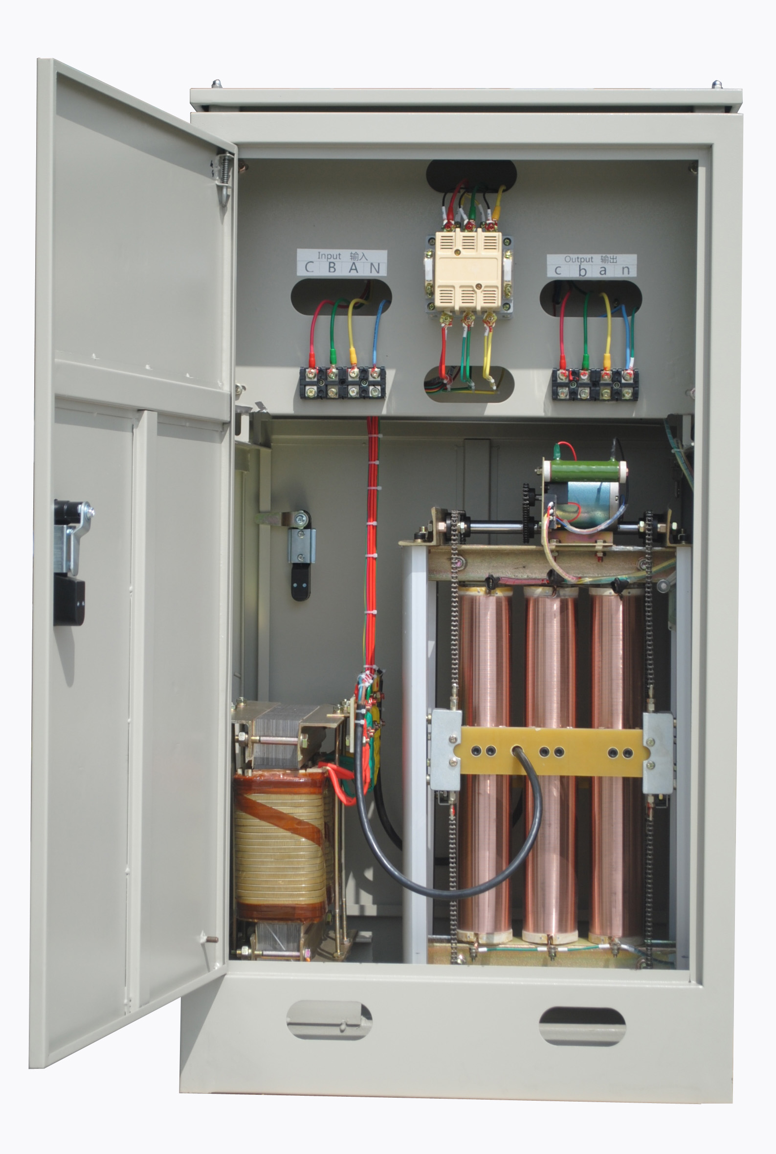 DBW,SBW系列单、三相全自动补偿式电力稳压器是我公司引进吸收西欧先进技术,同时结合我国国情,为稳定交流电压而设计。当外界的供电网络电压波动或负载变化而造成电压波动时,能自动保持输出电压的稳定。本系列产品与其他形式稳压器相比具有容量大,效率高,无波形畸变,电压调节平稳等优点,适用负载广泛,能承受瞬时超载,可长期连续工作,手动/自动随意切换,设有过压、过流、缺相、相序保护,以及体积小、重量轻、适用方便、运行可靠等优点。可广泛应用于工业,农业,交通,邮电,军事,铁路,科研文化等领域的大型机电设备、金属加工设备、生产流水线,建筑工程设备、电梯、医疗器械、轻纺设备、印刷设备、空调、广播电视以及家用电器、照明等需要稳压的场所。